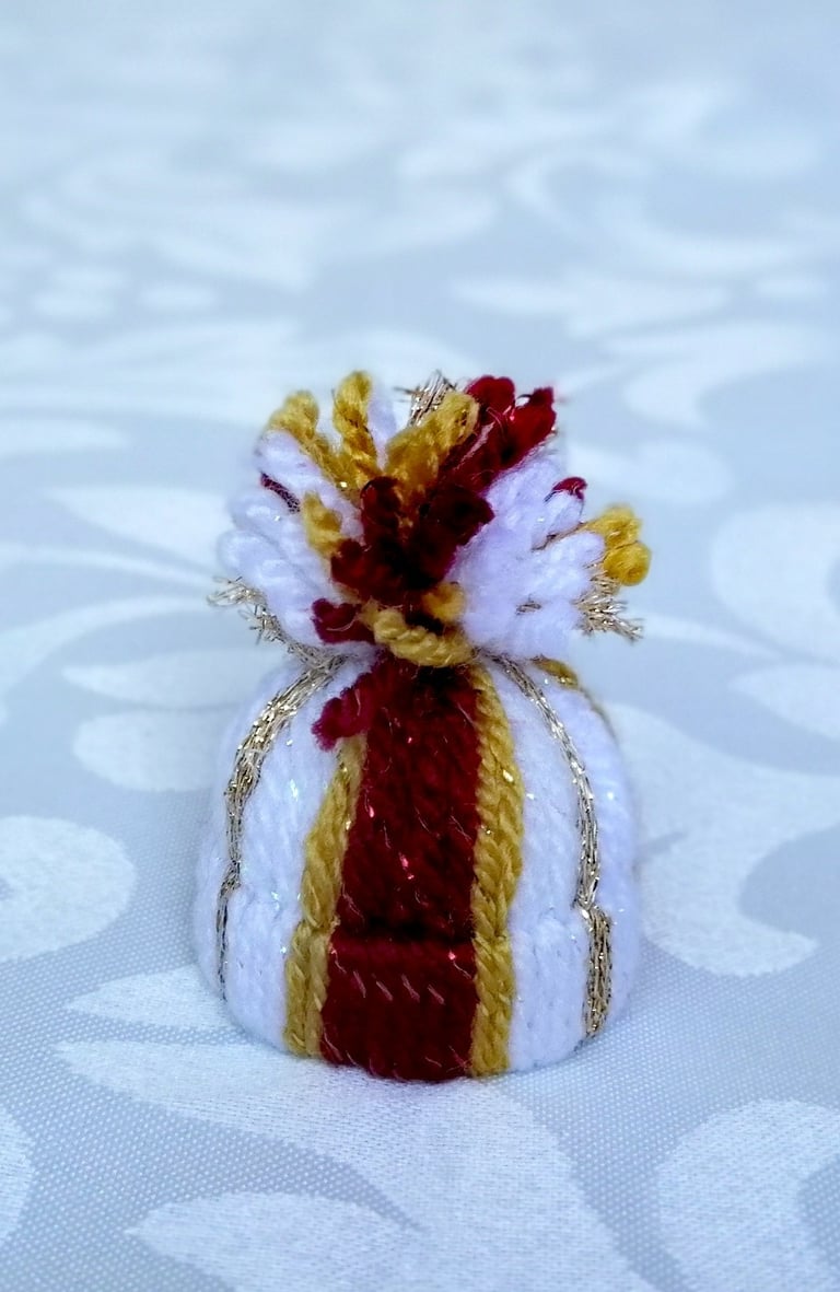 Ces mini bonnets de Noël font environ 5 cm (Haut.) sur 3 cm (Diam.). Etant faits à la main, leurs dimensions peuvent varier sensiblement.
